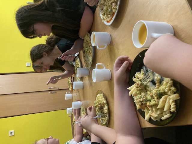 Podczas zajęć uczniowie poznają podstawy gotowania – od zasad bezpieczeństwa i higieny w kuchni, przez naukę korzystania z prostych narzędzi kuchennych, aż po przygotowywanie różnorodnych potraw. W praktyczny sposób uczą się planowania posiłków, dobierania składników oraz czytania przepisów kulinarnych.