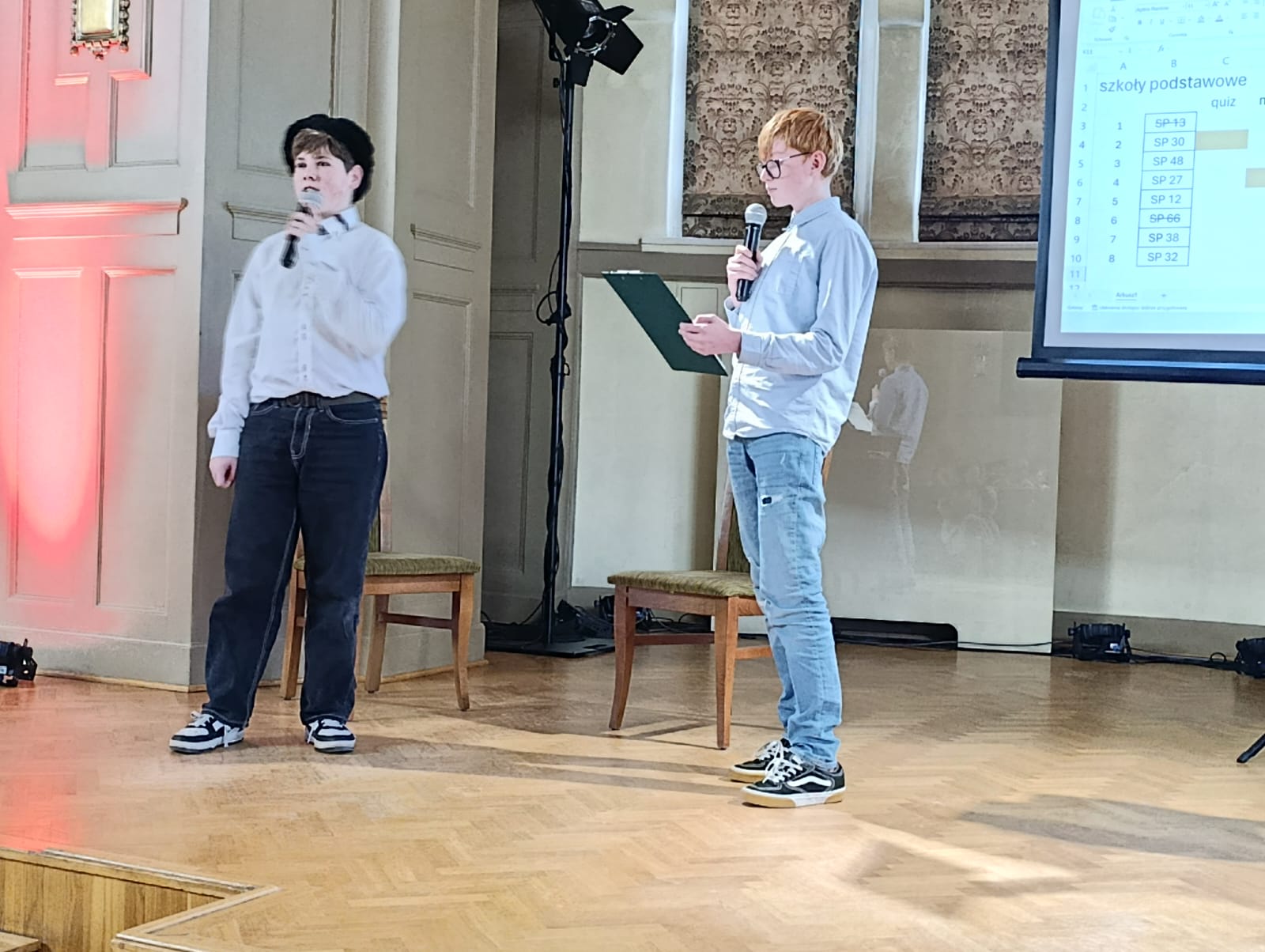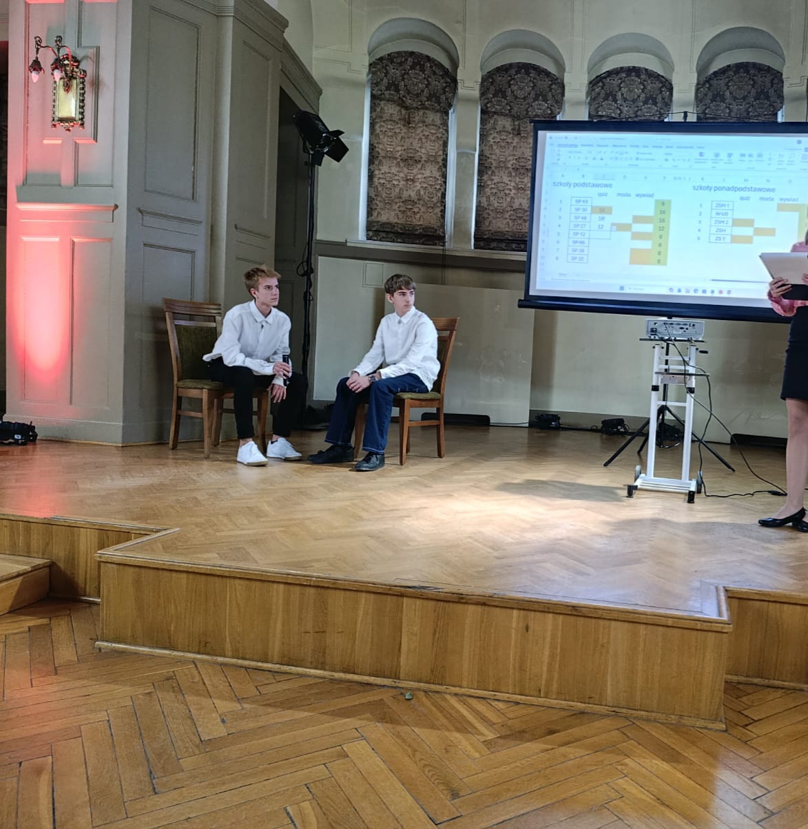 18 listopada odbył się konkurs pt. "Trójkąt filozoficzny", w którym nasza szkoła reprezentowana przez 6-osobowy zespół musiała wykazać się wiedzą na temat Kartezjusza, przygotować z nim wywiad oraz zaprezentować modę z czasów, w których on żył. Natalia i Bartek (kl.7a), Jakub i Piotr (kl. 8a) oraz Filip i Michał (kl. 8d) poradzili sobie znakomicie i zajęli 2 miejsce! Możemy być z nich dumni!