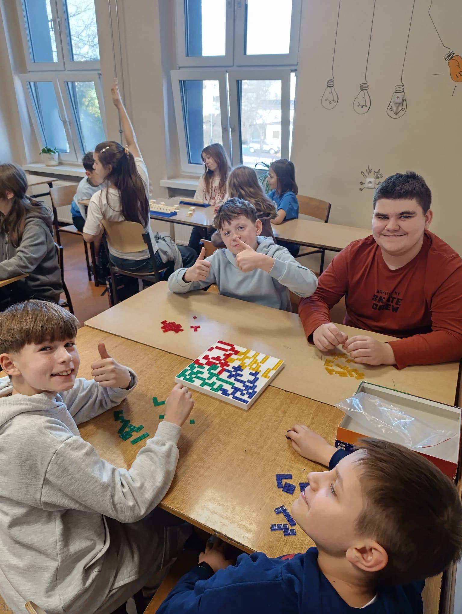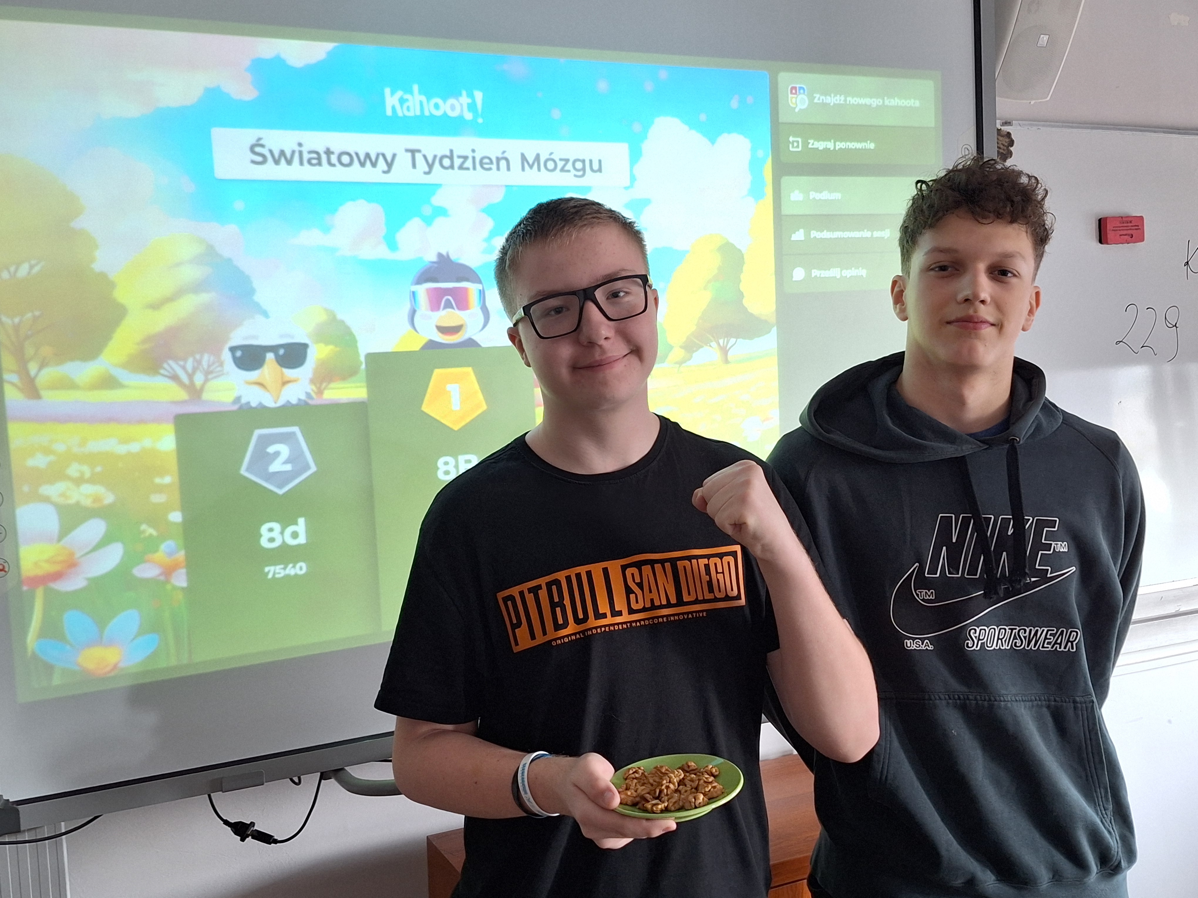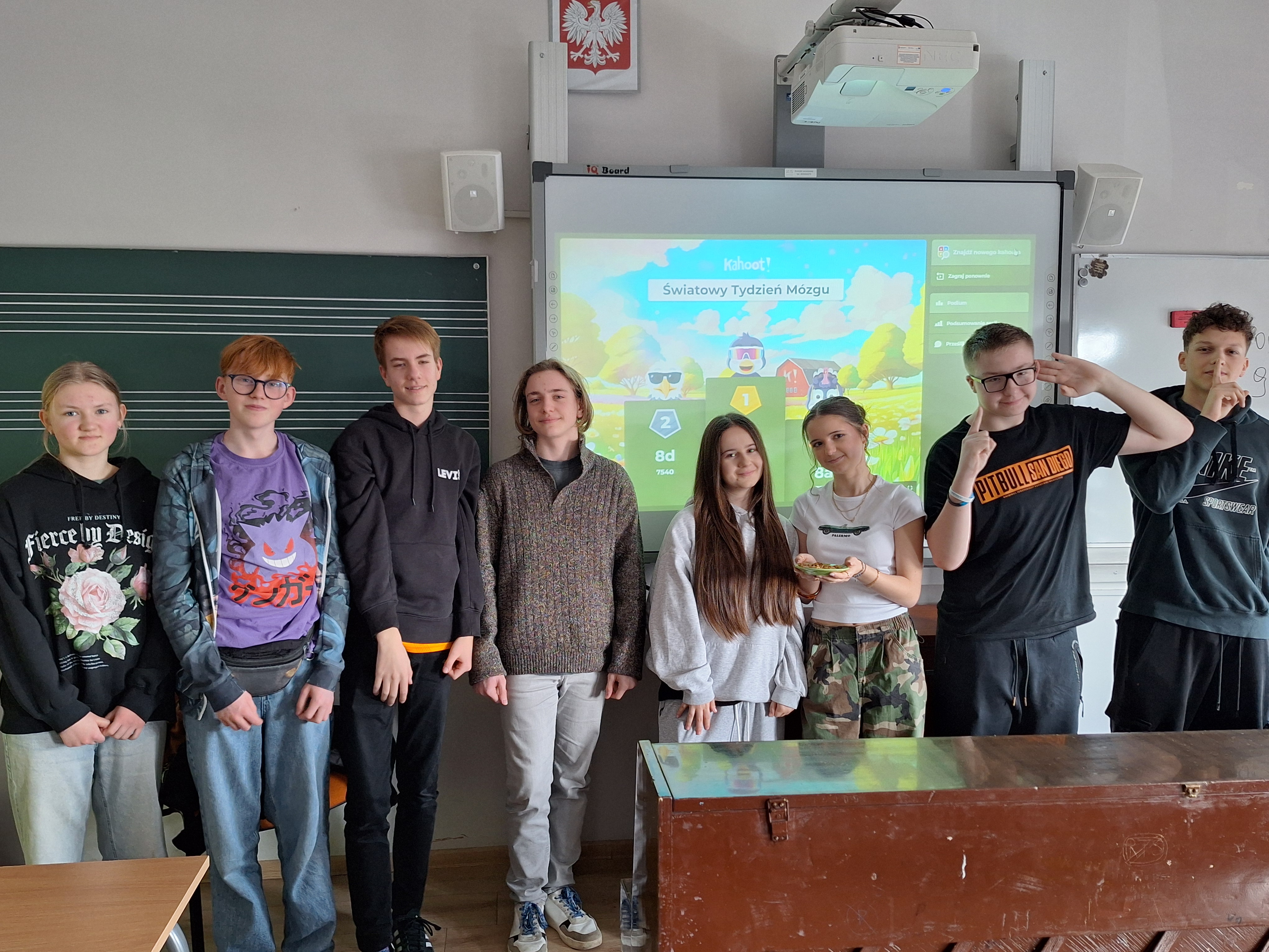 W ramach Światowego Tygodnia Mózgu wspólnie uczyliśmy i bawiliśmy się. Na lekcjach matematyki klasy 4-8 grały w gry logiczne. Uczniowie klas ósmych sprawdzili swoją wiedzę na temat budowy mózgu i jego funkcji biorąc udział w quizie kahoot. Konkurowały ze sobą dwuosobowe zespoły, a najlepszym okazał się team Antek i Kuba z 8b.