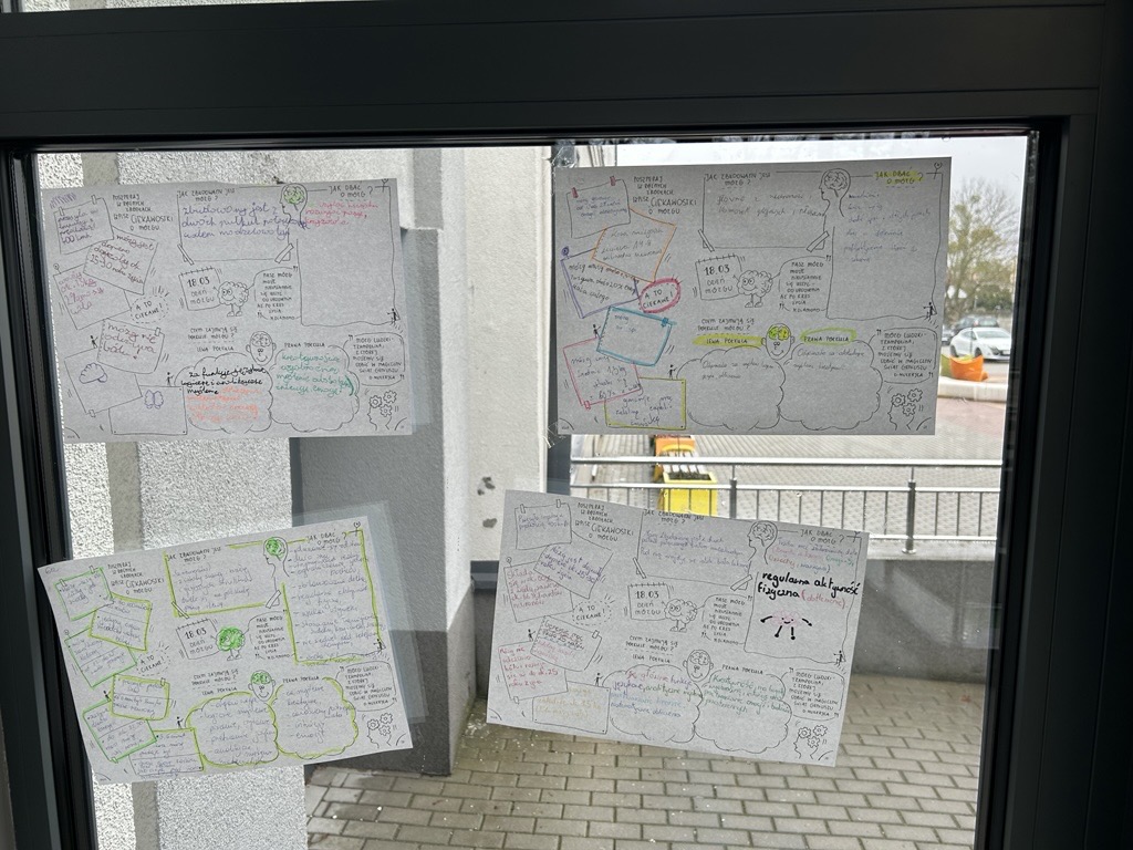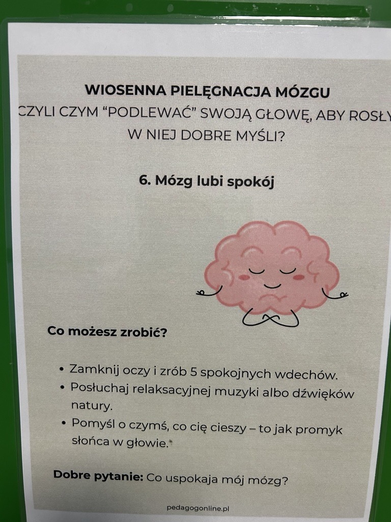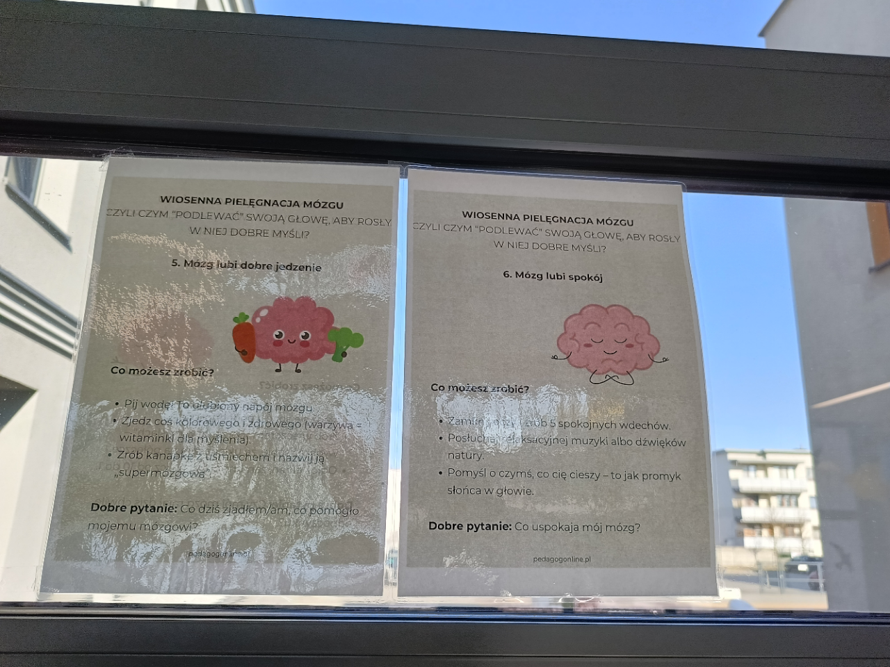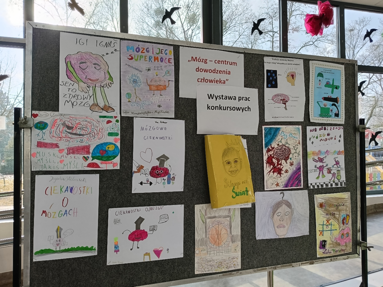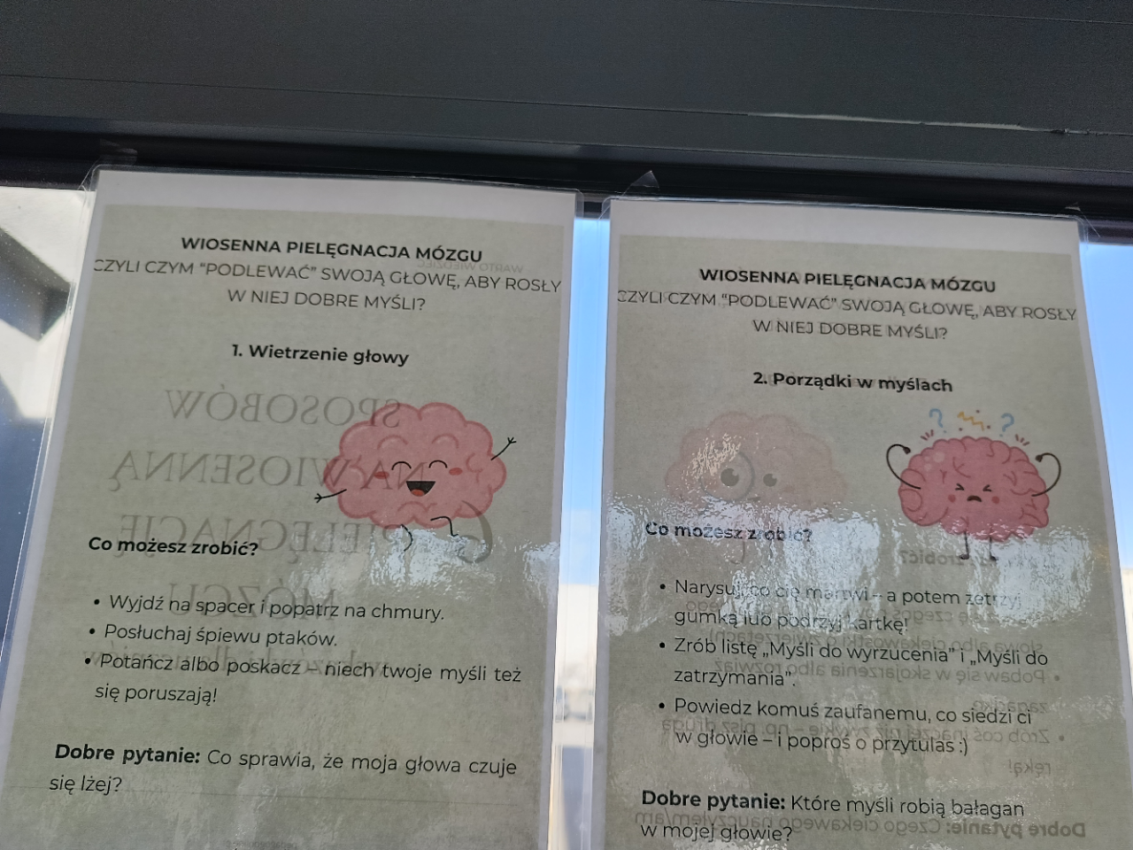 W ogólnodostępnej przestrzeni szkolnej uczniowie mogli poczytać ciekawostki na temat mózgu oraz jak o niego dbać.