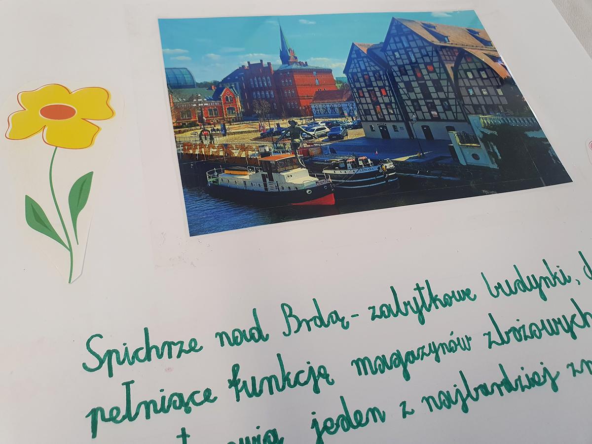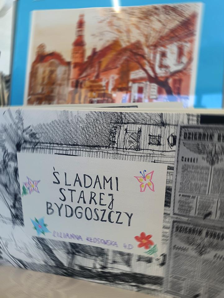 W szkolnym łączniku prezentujemy wystawę prac konkursowych - albumów „Śladami starej Bydgoszczy”. Uczniowie zaprezentowali swoje autorskie projekty, ukazujące historię i urok dawnych zakątków miasta.