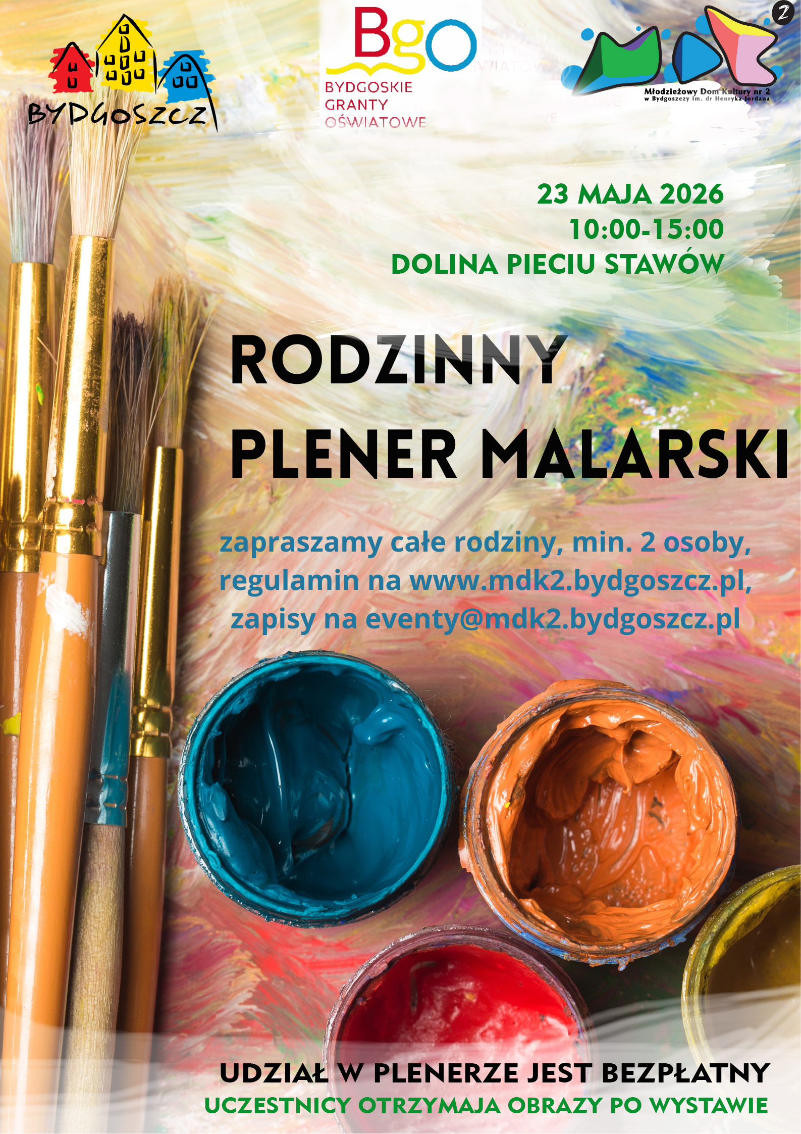 Zapraszamy serdecznie młodych artystów - dzieci i rodziców z naszej szkoły na plener malarski, który jest organizowany we współpracy z MDK 2 w Bydgoszczy w ramach BGO - Grantu 2026.