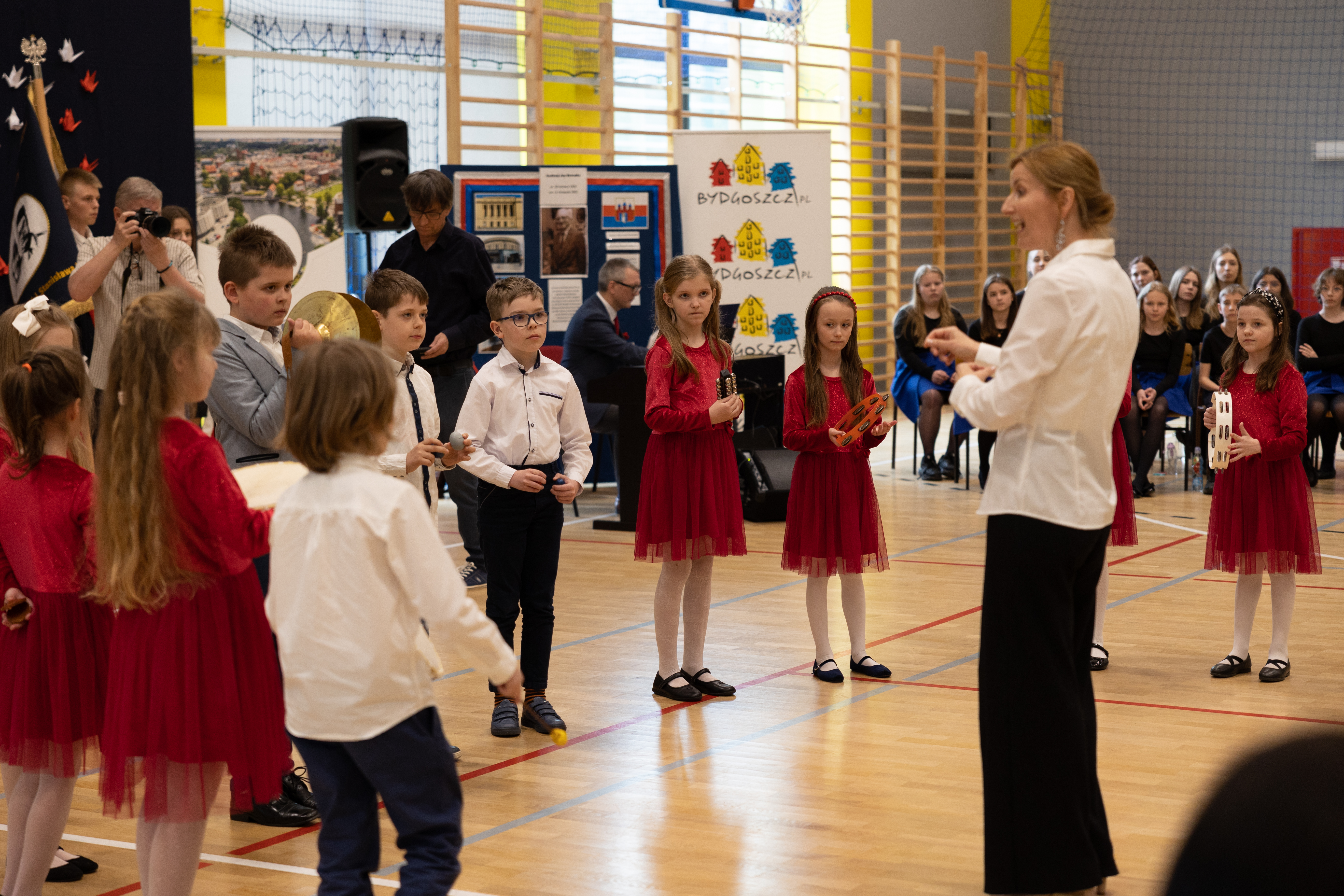 W życiu każdej szkoły są wydarzenia, które pamięta się bardzo długo. 25 kwietnia 2023 roku w hali sportowej naszej szkoły odbyła się uroczystość nadania szkole nowego sztandaru i pożegnania sztandaru Zespołu Szkół nr 14, który przez ostatnie lata towarzyszył nam w licznych uroczystościach, w chwilach smutnych i radosnych. Uroczystość połączona została z hołdem wybitnej postaci minionego stulecia, Andrzeja Szwalbego, z okazji 100. rocznicy urodzin w ramach BGO. Z tej okazji swoją obecnością zaszczycili nas dostojni goście, przedstawiciele lokalnych władz, dyrektorzy szkół i instytucji współpracujących ze szkołą, radni, rodzice i przyjaciele szkoły. Wszystkich zgromadzonych bardzo serdecznie powitała Dyrektor szkoły - p. Katarzyna Borkowska. Obecni na uroczystości goście, uczniowie, rodzice, nauczyciele i pracownicy szkoły byli świadkami niezapomnianych wrażeń artystycznych ale też doniosłej chwili wyprowadzenia starego sztandaru, poświęcenia nowego sztandaru przez księdza Dariusza Wesołka, przekazania aktu fundacyjnego przez rodziców na ręce pani dyrektor, nabicia pamiątkowych gwoździ na drzewcu i złożenia podpisów pod aktem ufundowania sztandaru. W pamięci wielu osób pozostanie najważniejsza chwila - wręczenie przez rodziców sztandaru pani dyrektor oraz przekazanie go przez panią dyrektor uczniom, którzy z godnością i dumą przyrzekli „otaczać go czcią i dbać o to, by właściwym zachowaniem i rzetelną nauką pracować na dobre imię szkoły” oraz złożenie uroczystego ślubowania na sztandar reprezentantów klas i pięknego odczytania tekstu ślubowania przez wiceprzewodniczącą SU, Oliwię Berdych. Przez cały czas trwania uroczystości wszyscy mogliśmy oddać się chwili zapomnienia i przenieść się w muzyczny świat utworów wokalnych i tanecznych, które przygotowane zostały przez uczniów PZSM im. Artura Rubinsteina: Michała Sitarka i Sebastiana Gut, zespół Amadeo pod kierownictwem Mariusza Procelewskiego, który rozpoczął uroczystość Polonezem, Zespół Tańca Współczesnego „Kontra VI” z MDK nr 2 w Bydgoszczy pod kierunkiem pani Doroty Przywary - Kaps oraz uczniów naszej szkoły. Orkiestrę dziecięcą kierowaną przez panią Magdalenę Gut i Aleksandrę Jóźwiak oraz chór „Cantabile” pod kierunkiem pana Jacka Szacho - Głuchowicza, który wykonał niezapomniany utwór „Kusimama”. Tego dnia została również przeprowadzona interaktywna gra miejska pn. „Śladami Andrzeja Szwalbego po Bydgoszczy”, przygotowana przez Małgorzatę Torzewską i Andrzeja Szewczykowskiego we współpracy z MOEN w Bydgoszczy a uczniowie klas młodszych w Filharmonii Pomorskiej wysłuchali koncertu pn. „W orkiestrze dętej siła”. Była to uroczystość oraz dzień, który zostanie na długo w pamięci wielu z nas. Wszystkich tych, którzy nie mogli uczestniczyć w tym wydarzeniu zapraszam do zapoznania się z fotorelacją a na stronie szkoły również z odtworzenia jej przebiegu. Zachęcam do przeczytania specjalnie wydanego biuletynu informacyjnego, który przybliży wszystkim zainteresowanym historię naszej szkoły i w pewnym stopniu ukarze jej teraźniejszość oraz to, jak się zmieniła w ostatnich latach. Z wyrazami uznania dla Państwa pracy, zaangażowania oraz wysiłku włożonego w przygotowanie tak wyjątkowej uroczystości a także niezliczonych gestów przyjaźni i z serca płynących słów uznania - DZIĘKUJĘ!