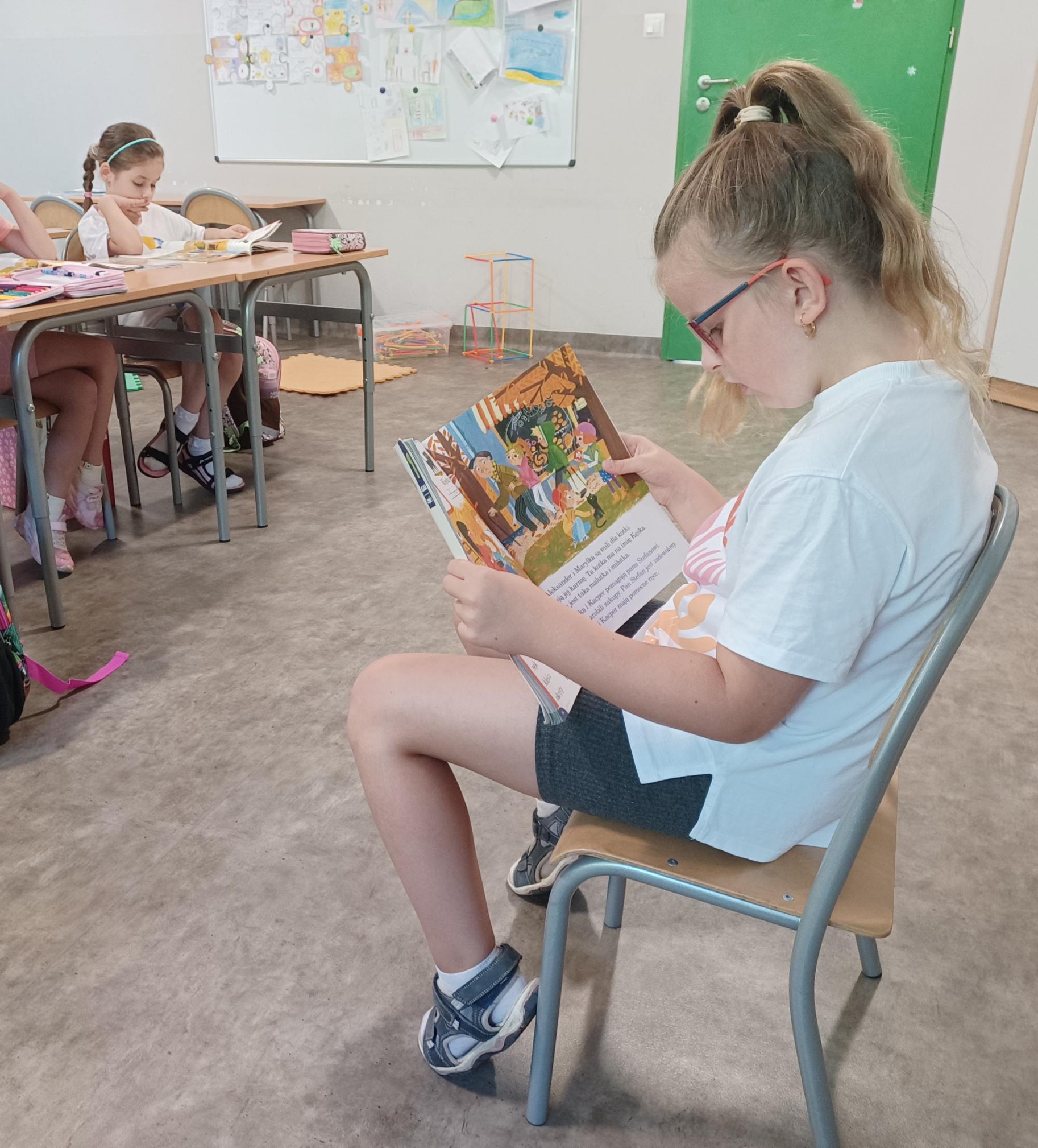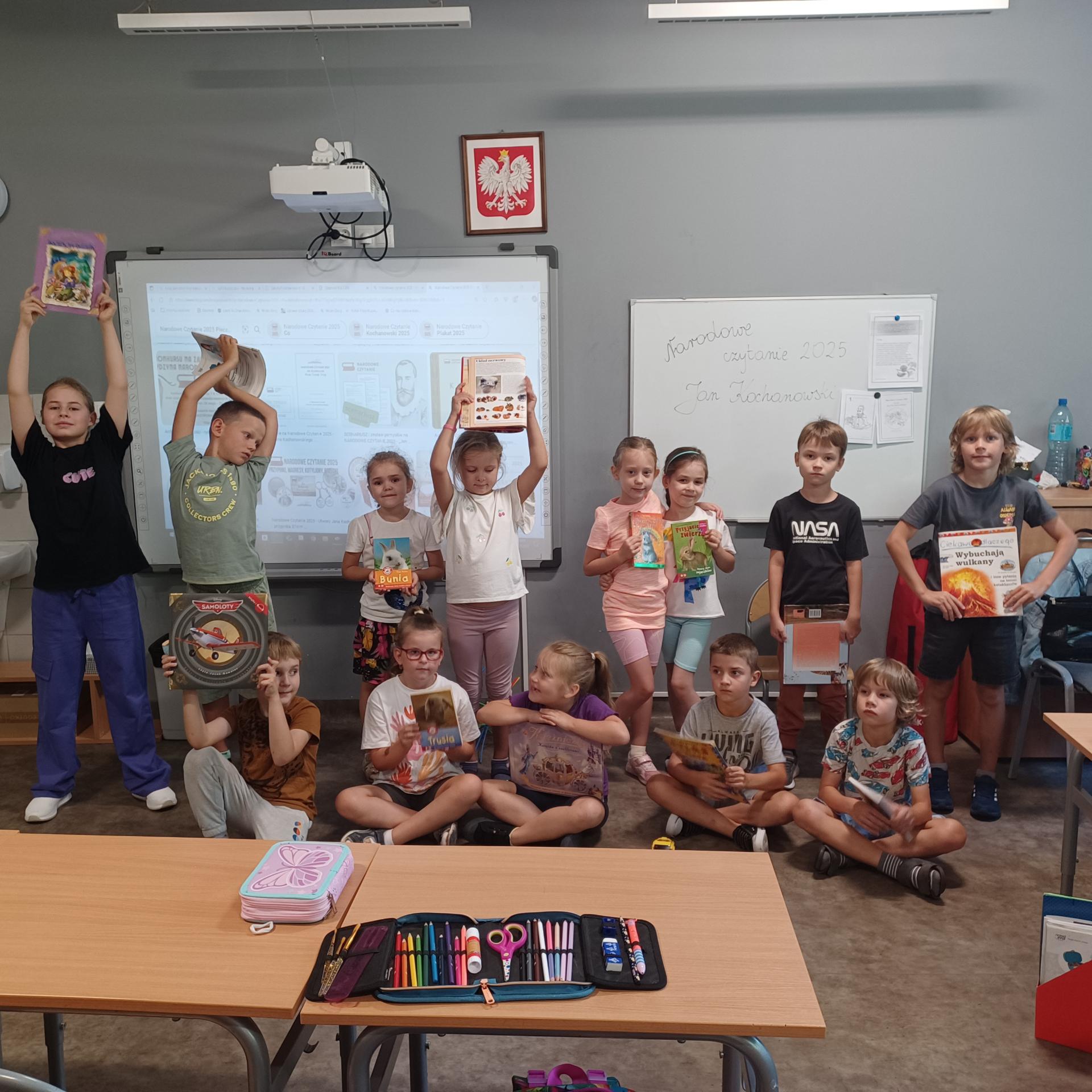 Z okazji Narodowego Czytania uczniowie klasy 1d wysłuchali fraszki "Na lipę", rozmawiali o korzyściach płynących z odpoczynku pod tym drzewem i spożywaniu miodu lipowego. Poznali też postać Jana Kochanowskiego. Niektórzy uczniowie zaprezentowali swoje umiejętności czytelnicze. Wszyscy pierwszoklasiści uwielbiają i polecają czytanie!